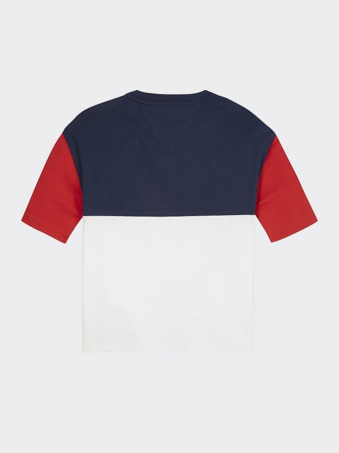 Dit colour-blocked T-shirt met nostalgisch 1985-logo straalt pure Tommy-stijl uit.