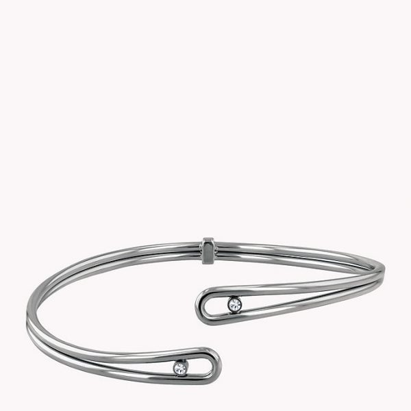 Dress-up met deze zilverkleurige metalen armband met shiny kristallen en een sleek design.
