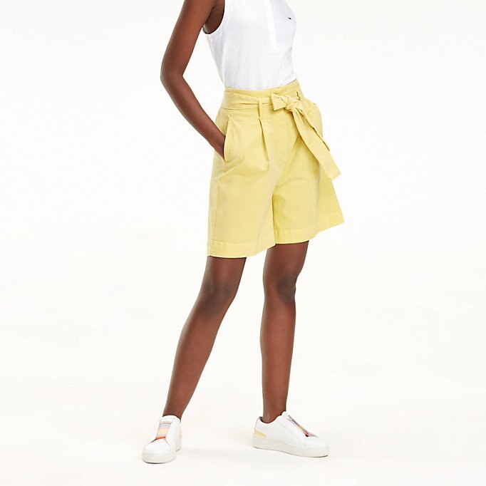 Deze high rise broek van duurzaam stretchkatoen is er een met klasse; persvouwen en een striklint in de taille zorgen voor elegante look.