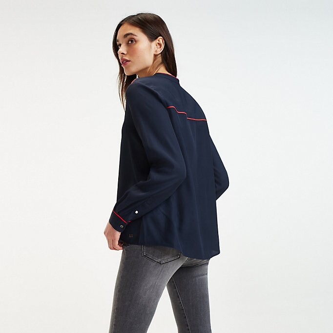 In deze blouse van viscose met contrasterende biezen ben je goed gekleed voor een werkdag én de borrel die volgt.
