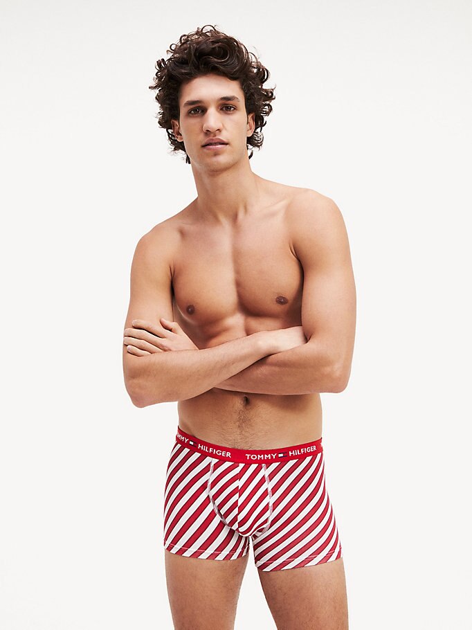 Deze nauwsluitende boxershort van stretchkatoen heeft een extra dynamische look door de diagonale zuurstokprint.