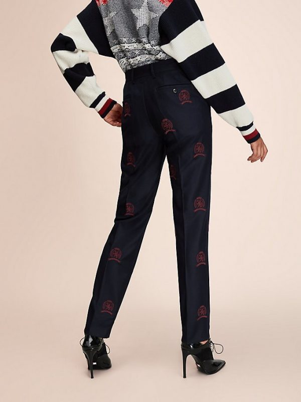 Ga voor een old-school varsity-look in deze scheerwollen broek met contrasterende emblemen, verkrijgbaar met bijpassende blazer.