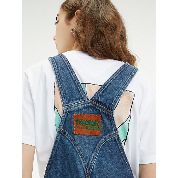 Herleef de nineties in deze duurzame dungaree-jurk van gerecycled denim met een lekker grote Tommy Jeans-patch op de rug.