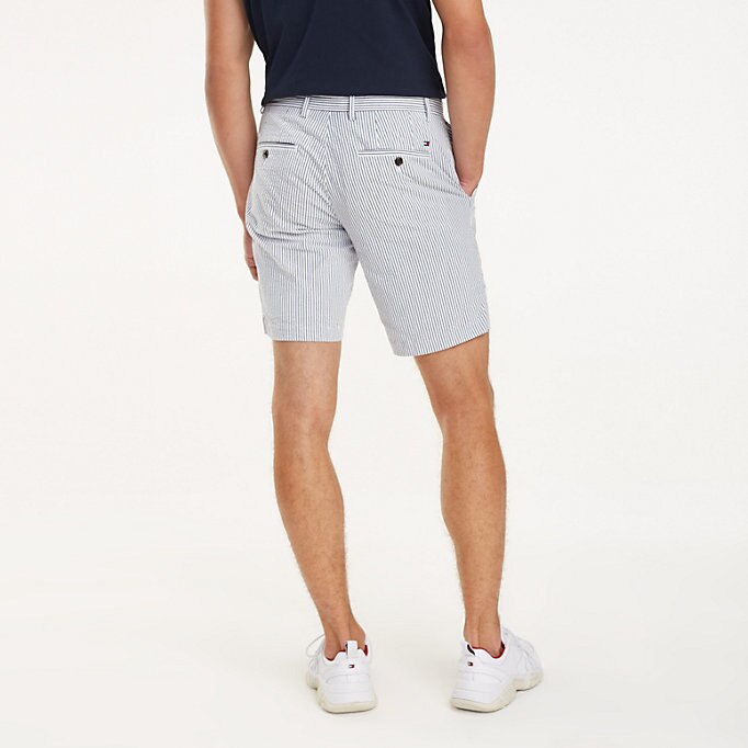 Hop zo van boot naar promenade in deze luchtige stretchkatoenen short met subtiel streeppatroon.