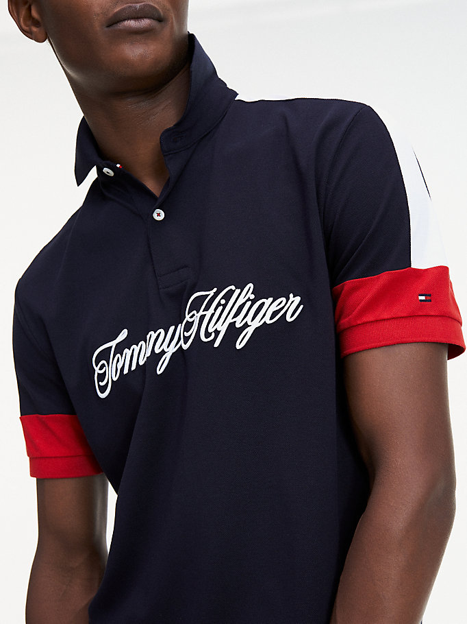 Het iconische Tommy Hilfiger-logo geeft dit poloshirt met stoer colour-blocked ontwerp een stand-out finish.