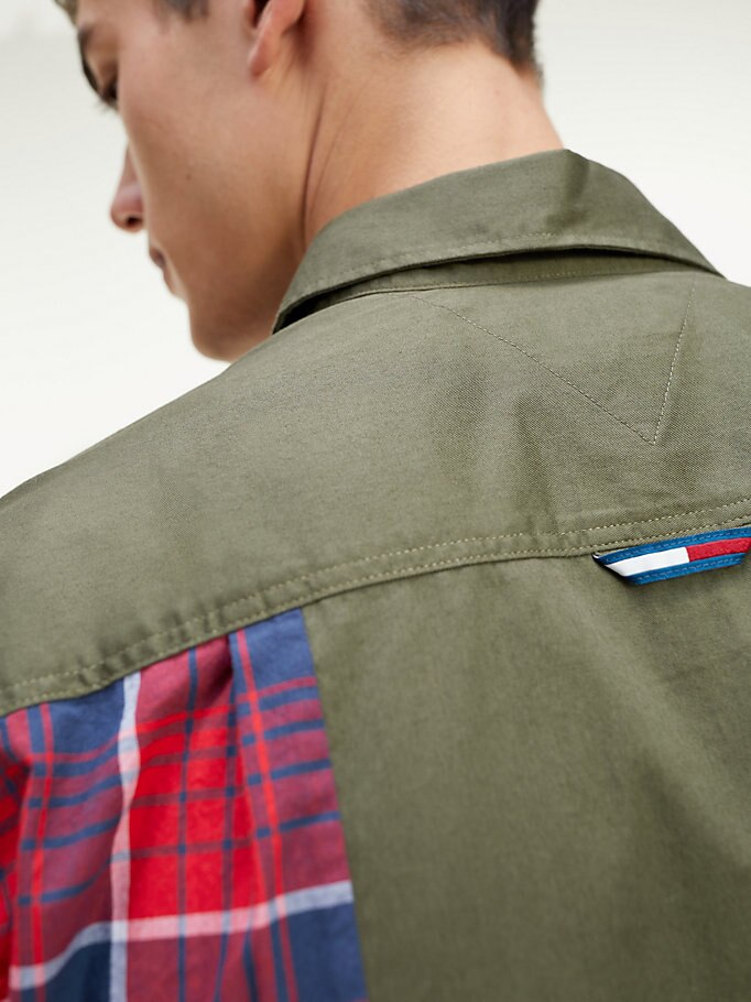 De Tommy Jeans-patch met klittenband geeft dit stoere overhemd met opvallende contrastpanelen een extra edgy accent.