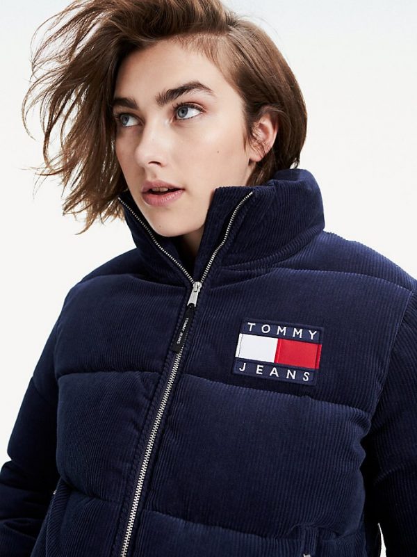 Ga voor retro cool met een urban randje in dit corduroy pufferjack met Tommy Jeans-vlag op de borst.