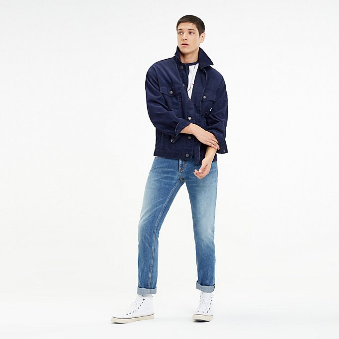 Dit klassieke truckerjack uitgevoerd in corduroy met Tommy Jeans-logo is een echte ‘blast from the past’ en weer helemaal van nu.
