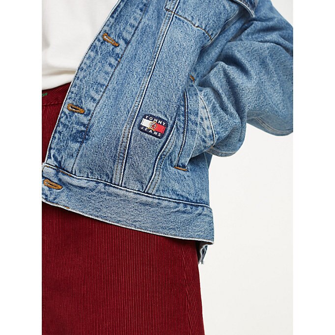 Keep on truckin’ in dit veelzijdige denim jack met gewaagd Tommy Jeans-embleem op de rug.