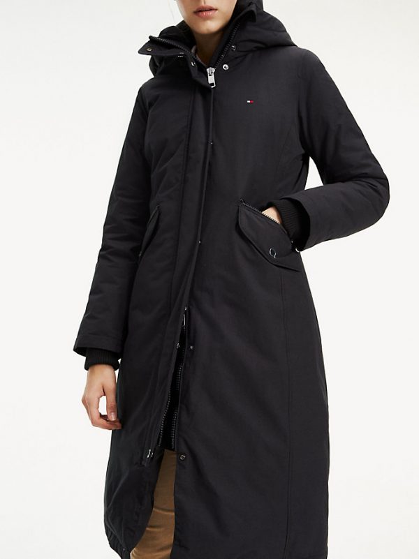 Met z’n zachte padding en comfortabele ribgebreide manchetten werkt deze extra lange parka als een cosy cocoon.