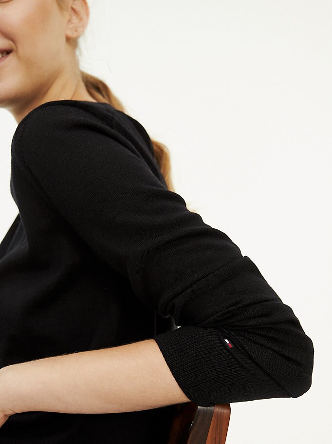 Deze luxe wollen trui met ribgebreide kraag en zoom is de ideale basic voor het voorjaar.