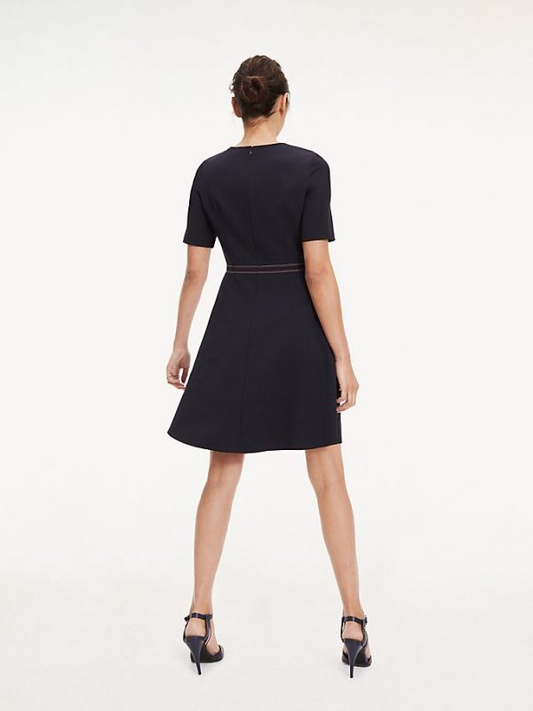 Het contrasterende stiksel aan de voorkant en op de taille geeft deze fit-and-flare jurk nog meer vorm.