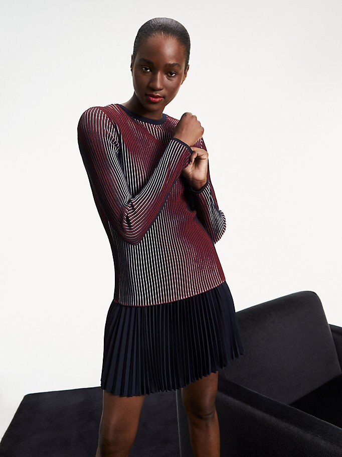 Deze nauw aansluitende trui met fancy strepenpatroon en ribgebreide finish is perfect voor je volgende feestje.
