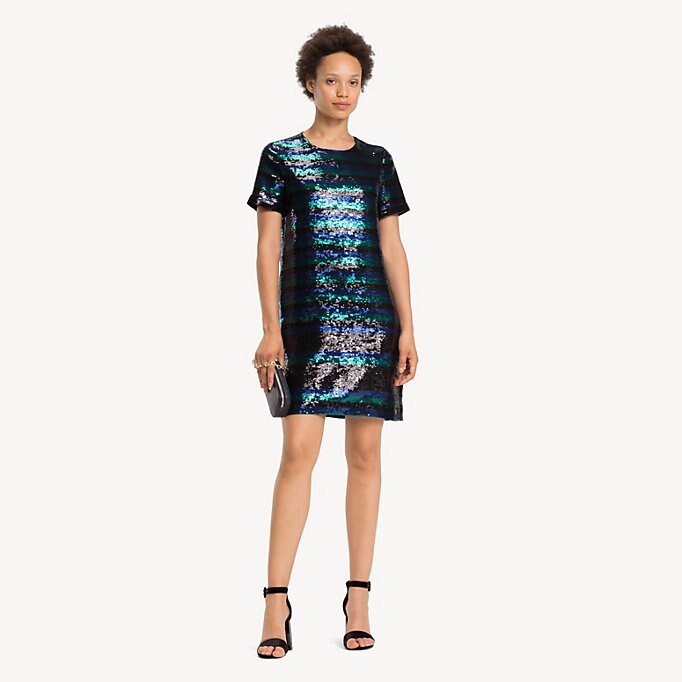Dance till dawn in deze glimmende jurk van paillettenstof met verborgen ritssluiting op de rug.