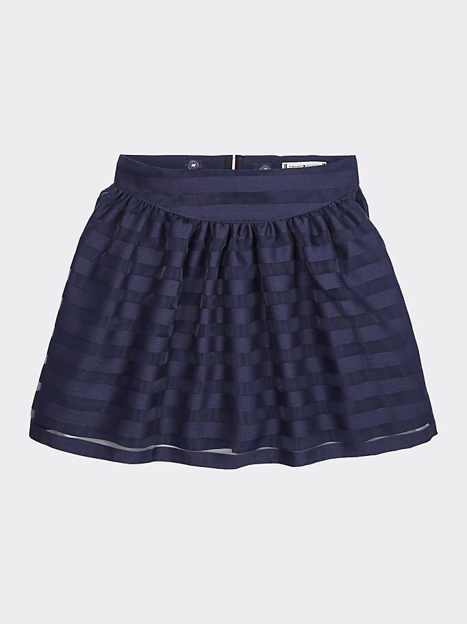 Ga sierlijk het feestseizoen in met deze lichtgewicht rok van organza met all-overstreep.