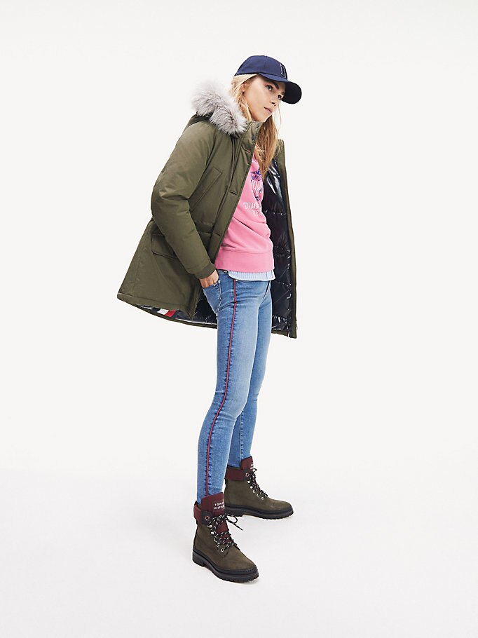 Deze gewatteerde parka met glossy contrasterende voering en fluffy capuchon wordt hoogstwaarschijnlijk je grote winterfavoriet.