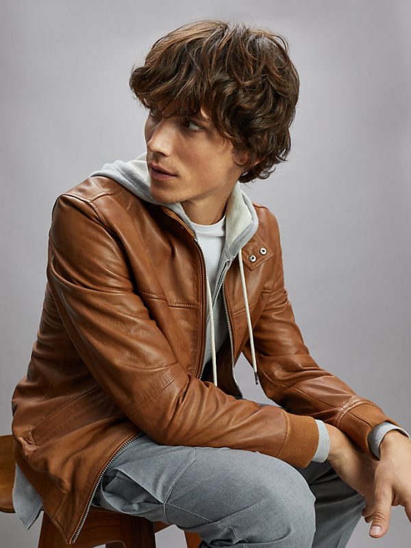 Kies voor een ongedwongen stoere look in dit klassieke Harrington-jack van echt nappa-leer met rugbystrepen in de voering.