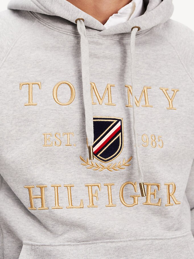Deze casual hoodie van fleece krijgt een royal finish door het gouden geborduurde Tommy Hilfiger-design op de voorkant.