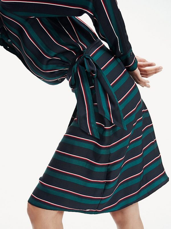 Breng de aandacht naar je taille in deze funky jurk met strikceintuur en kleurrijke strepenprint.
