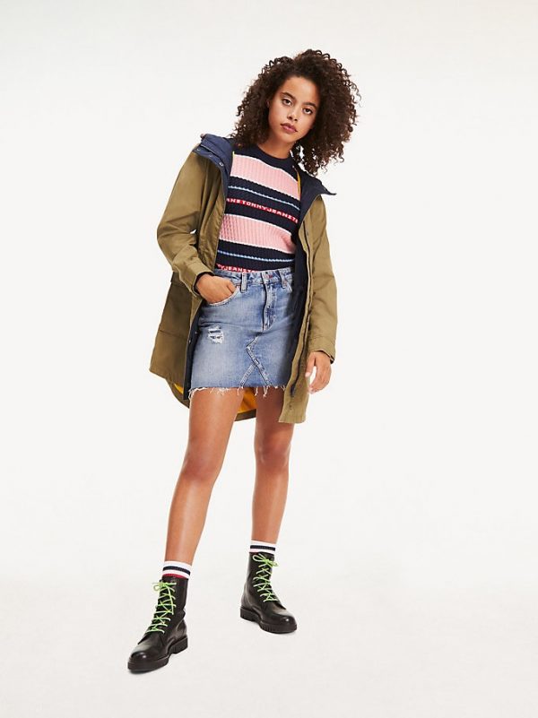 De contrasterende voering geeft deze understated klassieker met gesmokte taille en Tommy Jeans-branding een coole twist.
