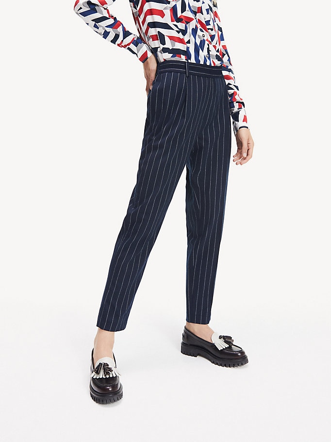 Als je weinig tijd hebt en toch chic gekleed wilt zijn, trek je deze stretch krijtstreepbroek met elastische taille supersnel aan.