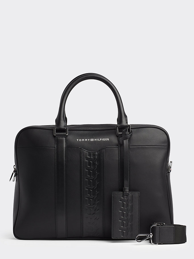 Perfectioneer je look met deze echt leren laptoptas: vanbuiten een clean design met subtiele reliëfaccenten en handige extra’s, en vanbinnen perfect georganiseerd.