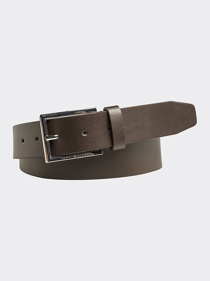 Deze leren riem met gladde afwerking en subtiel gegraveerde metalen gesp past perfect bij een smooth gentleman look.