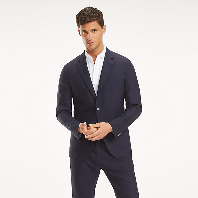 Start met een voorsprong in deze chique Mercedes-Benz-blazer van scheerwol met een statement-voering.