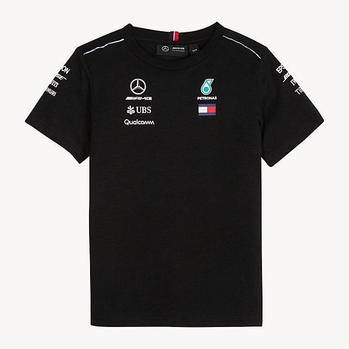 Voel je een F1-coureur in dit supersnelle en superstijlvolle T-shirt met coole racing-logo’s. Officiële replica-merchandise geproduceerd onder licentie van de officiële licentiehouder van Mercedes-AMG Petronas Motorsport, Branded.