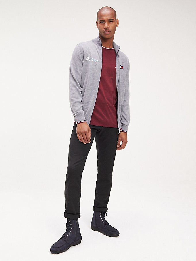 Deze comfortabele chino met stretch en subtiele Mercedes Benz X Tommy Hilfiger-branding straalt pure klasse uit.