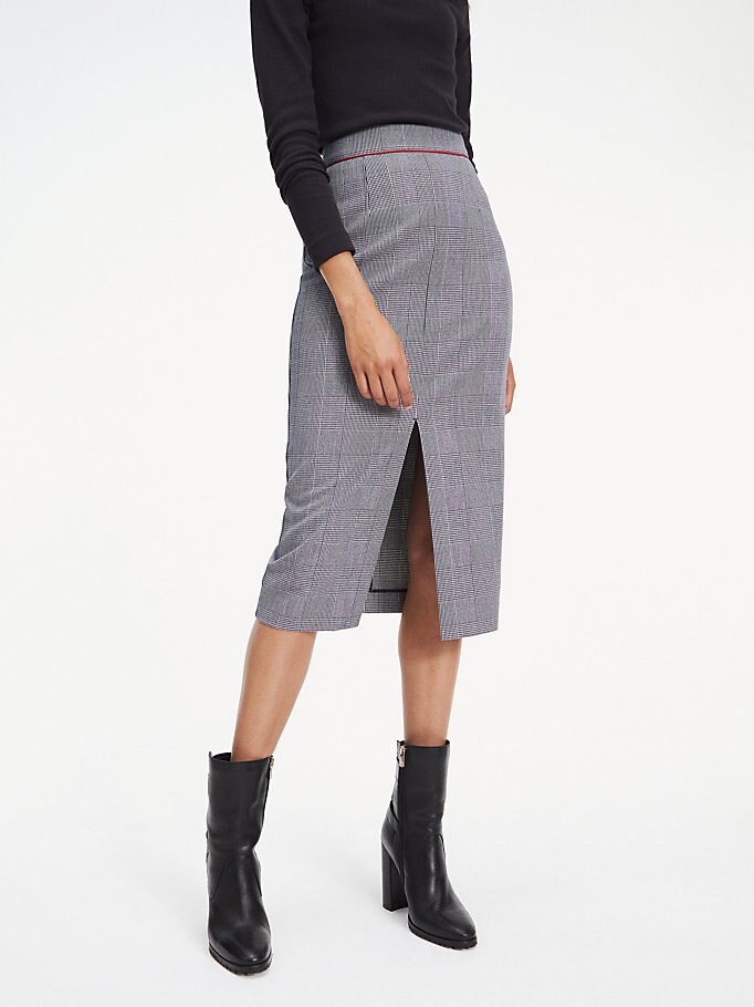 Deze sassy kokerrok met Prince of Wales-ruit en gekleurde bies geeft flair aan je werkdag.