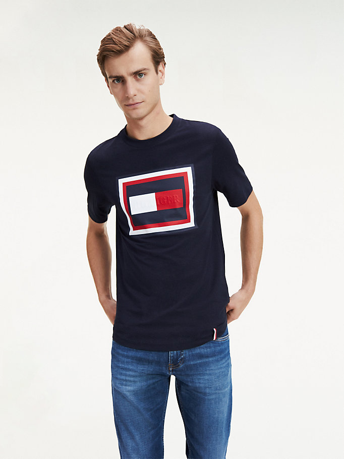 Door het stoere Tommy Hilfiger-logo in reliëf is dit biologisch katoenen T-shirt een echte eye-catcher.