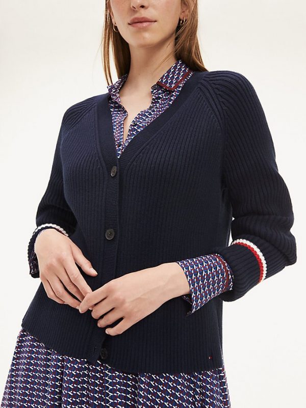 De omslagmanchetten met contrasterende streep maken de sophisticated look van dit ribgebreide vest compleet.