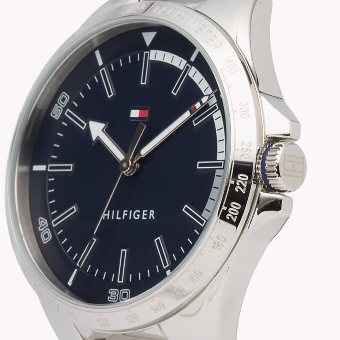Dit waterbestendige horloge met geschakelde polsband en understated Tommy Hilfiger-branding heeft het kaliber van een klassieker.