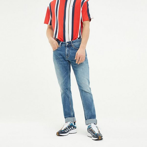 De contrasterende stukken van hergebruikt denim en het Tommy Jeans 1985-logo geven deze jeans een stoere, unieke look.