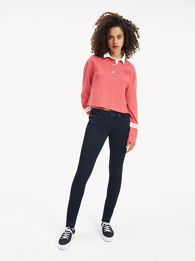 Geborduurde Tommy Hilfiger-vlag op de coin pockets en de achterzakken