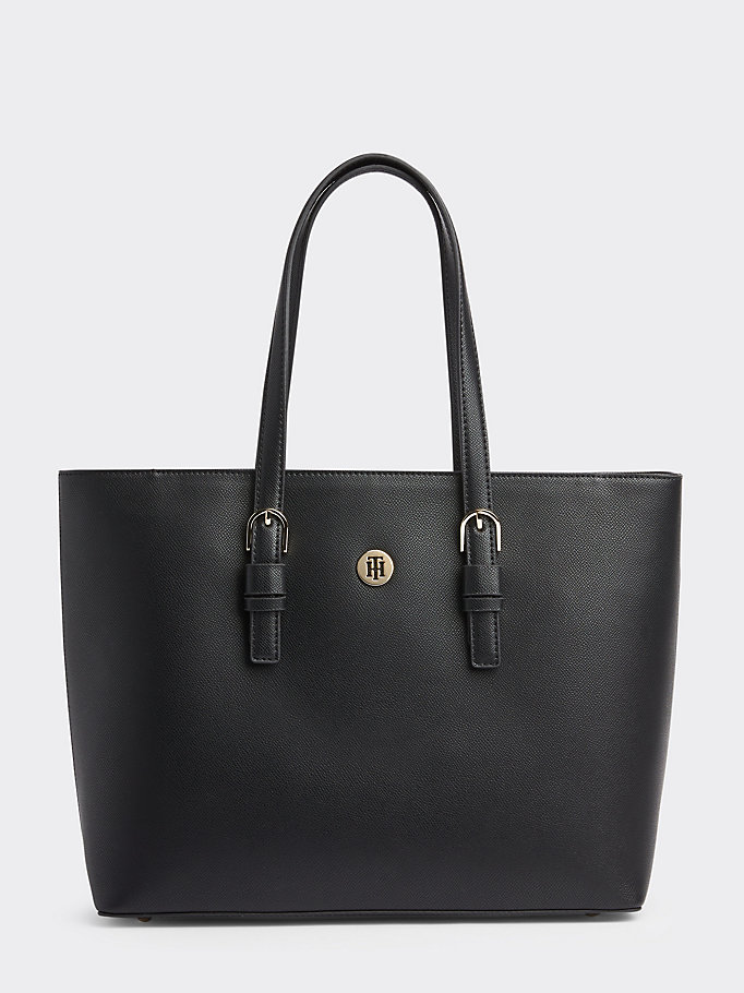Upgrade je outfits met deze stijlvolle shopper met glanzende goudkleurige hardware en iconische Tommy Hilfiger-monogrammunt.
