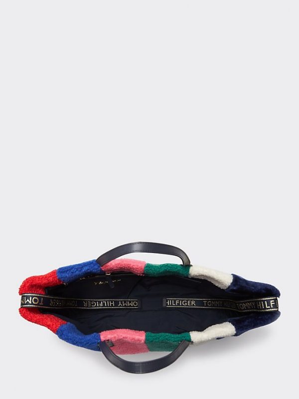 Deze fluffy shopper met all-over multicolourstreep en afneembare portemonnee geeft je look een colourful vibe.