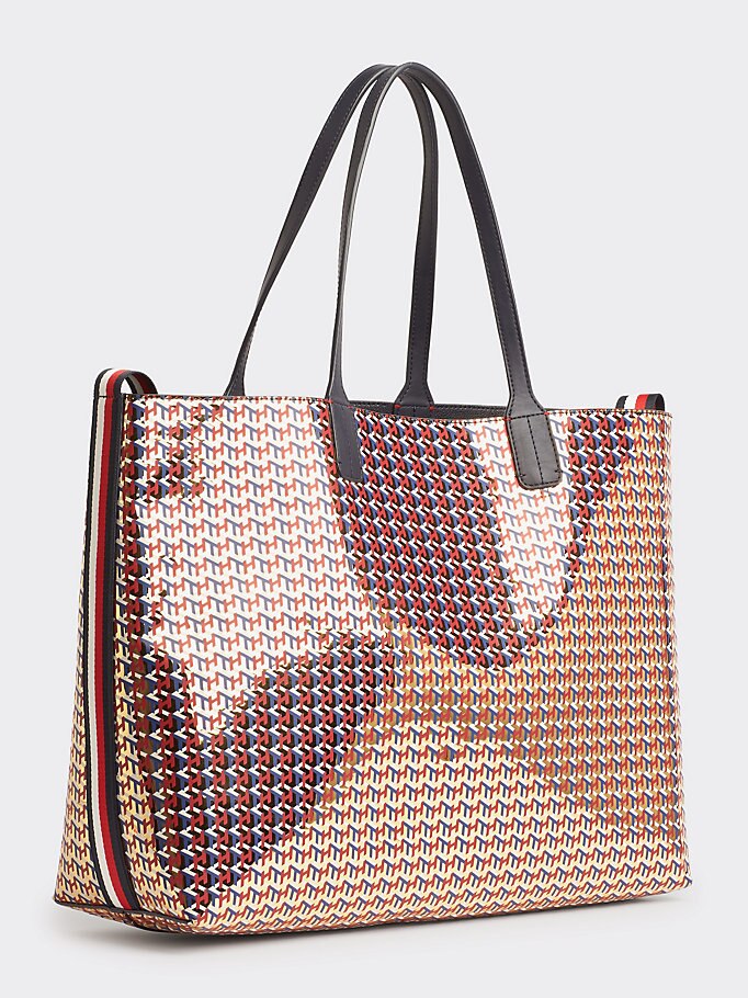 Je dagelijkse essentials passen met gemak in deze ruime shopper met Tommy Hilfiger-monogramprint in fashionable metallic look.