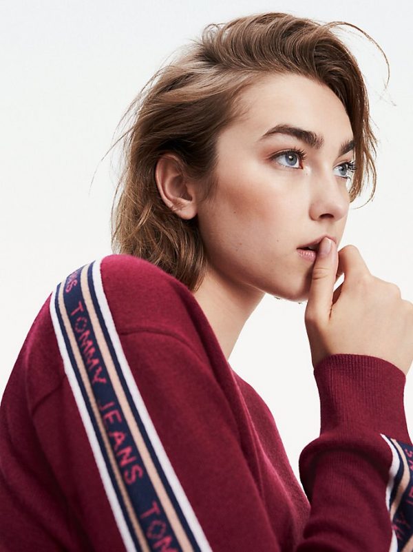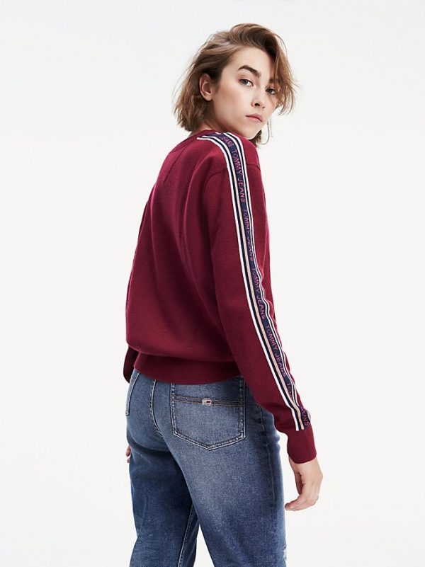 De Tommy Jeans-logotape langs de mouwen van deze fijn gebreide trui geeft hem een coole retro touch.