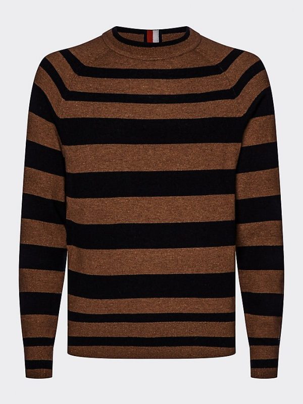 Deze klassieke trui met ronde hals is perfect voor in het weekend; het gestreepte design en de ribgebreide details zorgen voor extra stijlpunten.