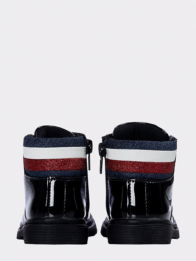 De gestroomlijnde gladde finish en iconische signature-details geven deze veterlaarzen een stijlvolle boost.
