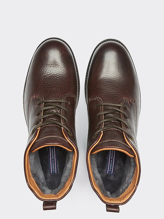 Ga voor een authentieke vintage look met deze veterlaarzen met schapenvacht vanbinnen en een gegranuleerde leerafwerking.