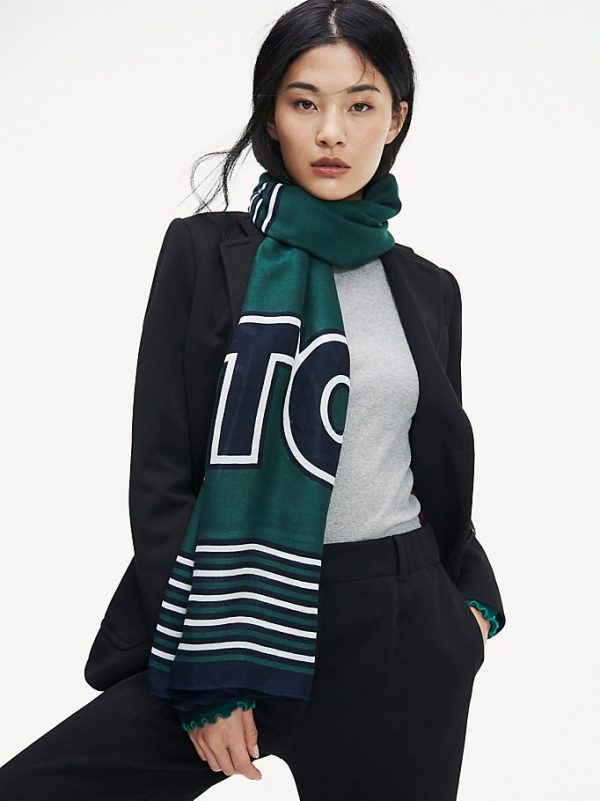 Met de uitgesproken streepprint en branding is deze katoenen sjaal het perfecte accessoire om je outfit helemaal af te maken.