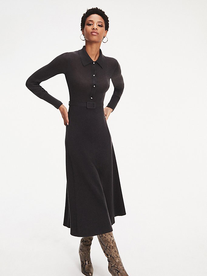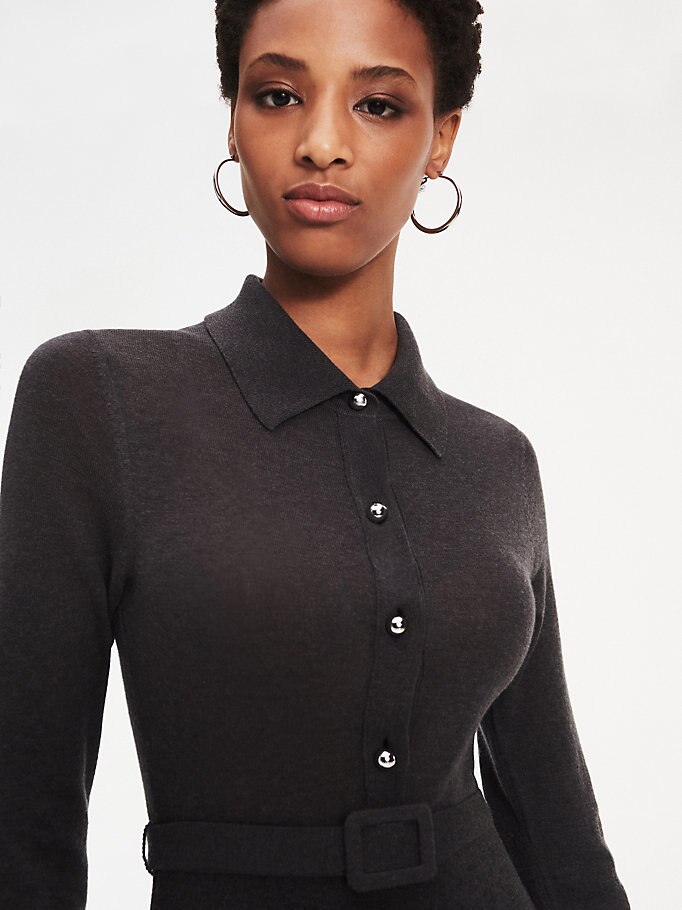 De bijpassende tailleriem geeft deze fijngebreide jurk van katoen-wolmix een charmante fit en flare.