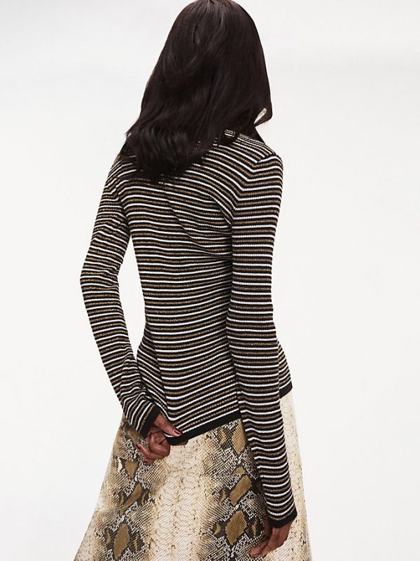 Geef je outfit wat extra sparkle in deze aansluitende trui met horizontale strepen en metallic finish.